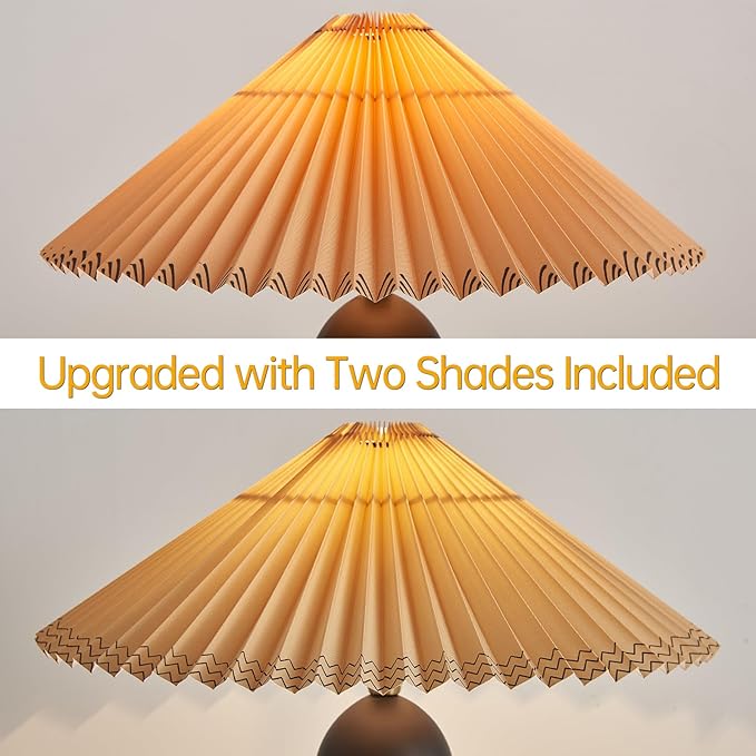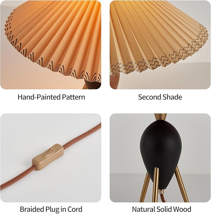 - π‘[Two Lampshades & Natural Solid Wood] Watch the video on this product page to learn how to install the lampshades. This modern solid wood table lamp includes two replaceable umbrella-shaped lampshades with different patterns. Made of natural rubber wood and coated with eco-friendly paint, its natural grain and texture are clearly visible.