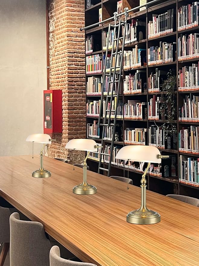 Newrays Traditional Glass Bankers Desk Lamp with Pull Chain Switch Plug in Fixture