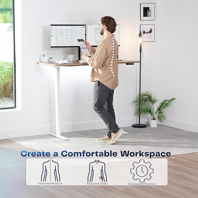 - Powerful Electric Motor: Enjoy a height range of 29.2” to 48.4” with this frame’s powerful motor and strong legs using precise telescopic height adjustment
