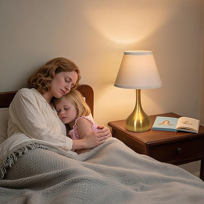 - Touch Control & 3-Way Dimmable: These touch-sensitive bedside lamps set of 2 allows you to tap any part of the metal base to easily switch between three brightness levels (low, medium, high). No more fumbling for lamp switches in the dark. Use medium for bedtime reading or scrolling, switch to low as a gentle nightlight when sleepy, and rely on eye-friendly high brightness for working or studying.