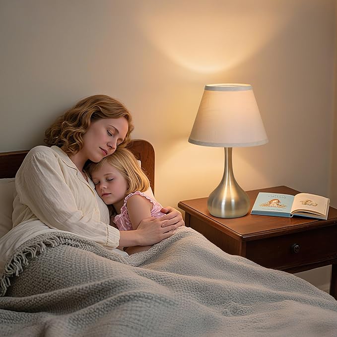 - Touch Control & 3-Way Dimmable: These touch-sensitive bedside lamps set of 2 allows you to tap any part of the metal base to easily switch between three brightness levels (low, medium, high). No more fumbling for lamp switches in the dark. Use medium for bedtime reading or scrolling, switch to low as a gentle nightlight when sleepy, and rely on eye-friendly high brightness for working or studying.