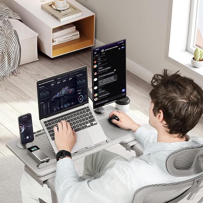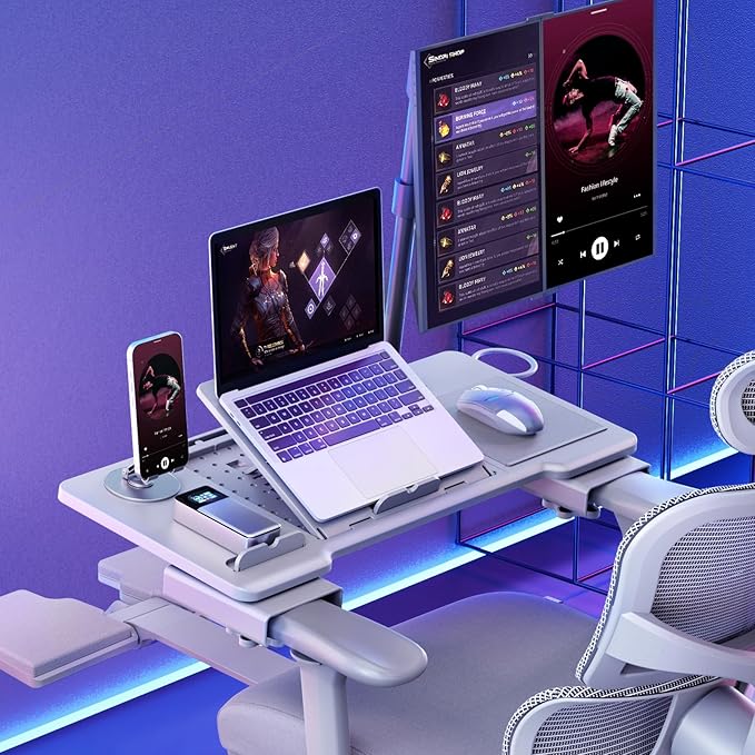 Newtral Home Office Laptop Desk for Armchairs, Adjustable Laptop Table Tray for Working, Gaming, Reading, Writing, and Eating (Gray, Enhanced)