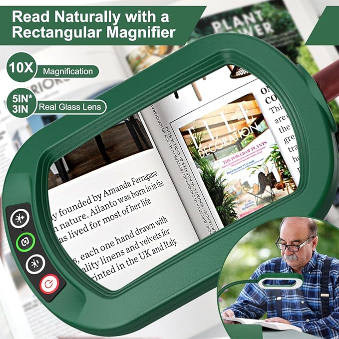 - 10X Square Magnifying Lamp: Experience up to 10X magnification with high-quality real glass lenses. The square lens design improves the edge distortion often associated with round lenses, providing you with a wider, more precise viewing area. This magnifying light is perfect for reading, crafts, and delicate projects such as painting, jewelry, sewing, and more. Whether you're a hobbyist or a professional, this magnifier gives you the detailed view you need to excel at your craft