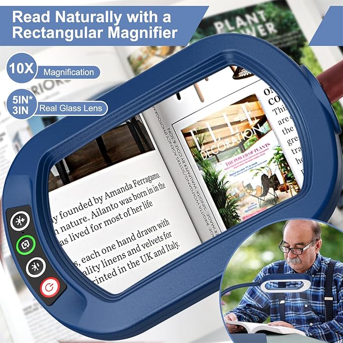 - 10X Square Magnifying Lamp: Experience up to 10X magnification with high-quality real glass lenses. The square lens design improves the edge distortion often associated with round lenses, providing you with a wider, more precise viewing area. This magnifying light is perfect for reading, crafts, and delicate projects such as painting, jewelry, sewing, and more. Whether you're a hobbyist or a professional, this magnifier gives you the detailed view you need to excel at your craft