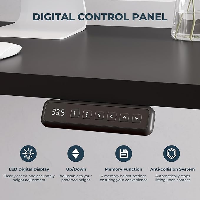 - Effortless Ergonomic Transitions: Power up your productivity with our electric standing desk that adjusts from 28.3" to 45.9". Four pre-set height options let you switch between standing and sitting with ease, promoting comfort and reducing strain.