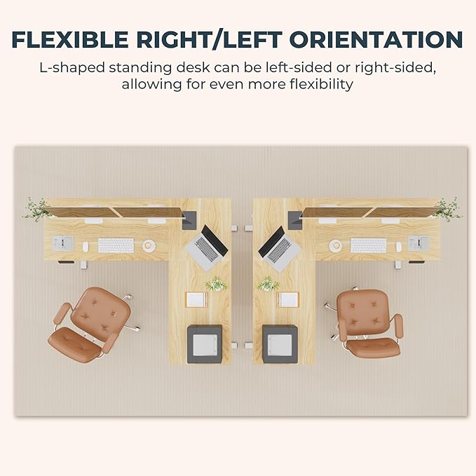 - Thoughtful L-Shaped Design: This L-shaped standing desk features a clever design that incorporates two spliced panels, effectively reducing the weight burden during installation. Additionally, this lift table has a collision avoidance feature to keep your workspace safe.