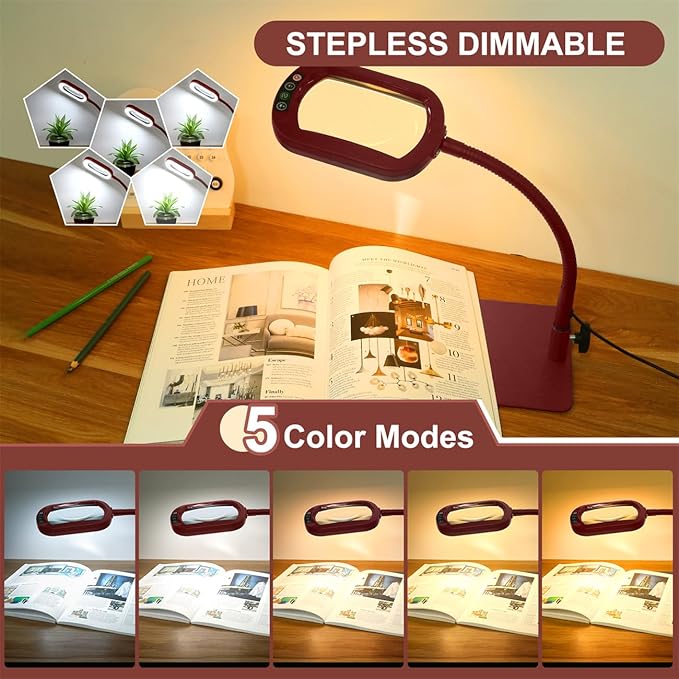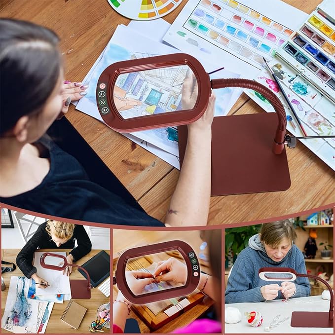 - Eye-Friendly & Adjustable Lighting: Protect your eyes while working on delicate projects with our lighted magnifying glass. The magnifier offers 5 color modes and a stepless dimmable. Whether you need bright daylight for precision work or a softer glow for relaxation, our magnifier with light covers it all and keeps your eyes comfortable all day long. More lighting versatility makes it perfect for needlework, puzzles, carving, embroidery, nail art, and more.