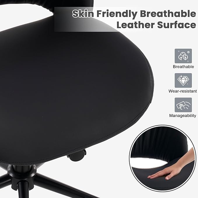 Rowill Armless Office Desk Chair, Ergonomic PU Leather Modern Task Chair with Back Adjustable Height, 360° Swivel Vanity Chairs with Wheels for Small Space, Home Office, Bedroom, Black