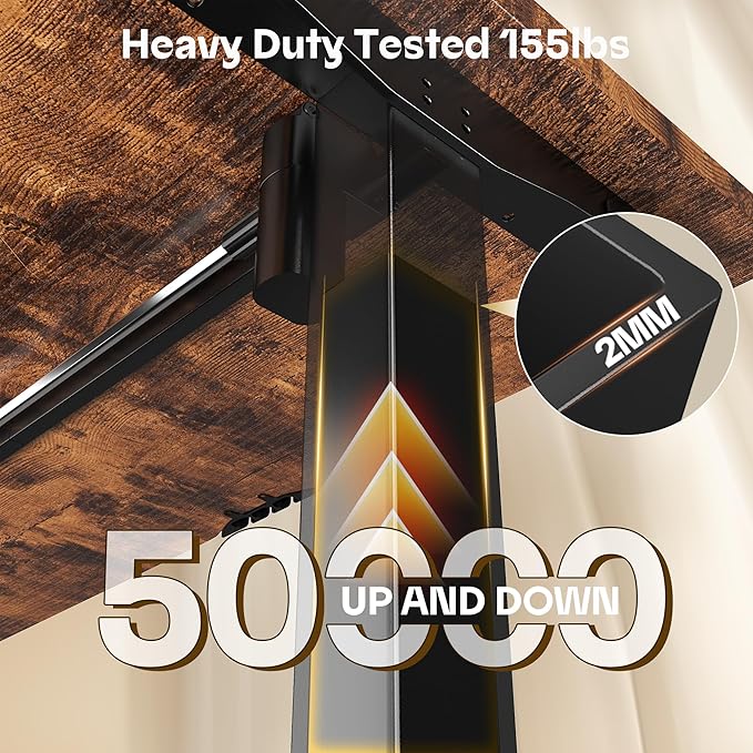 - Strong and Sturdy: This electric standing desk boasts an aerospace-grade lift system & industrial-strength desktop, supporting 155 lbs effortlessly. Reinforced dual crossbars minimize wobble, keeping monitors steady even after 50,000 test cycles. Type/write shake-free!