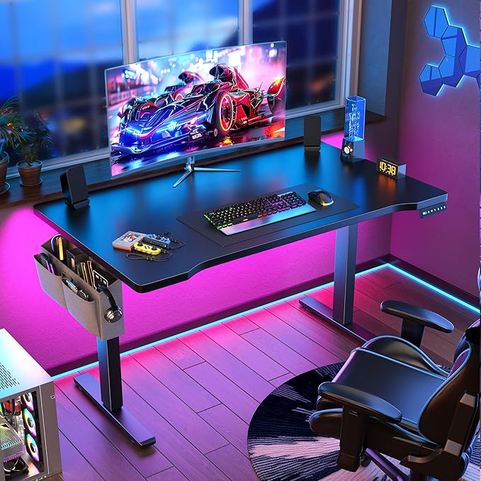 - Ergonomic Design: Crafted with 15mm thick sustainable material, this height adjustable desk is waterproof, heat-resistant, and ultra-durable. The gaming desks' rounded edges prevent bumps and provide ergonomic comfort, keeping wrists and arms strain-free during long work sessions.