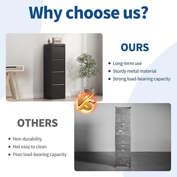 - 【Advanced Security】 Designed with a reliable locking mechanism and two dedicated keys, this file cabinet ensures top-tier protection for your confidential documents and valuables, effectively deterring unauthorized access. Ideal for offices, home studies, or bedrooms, it seamlessly integrates into any space while keeping your essentials secure and well-organized.