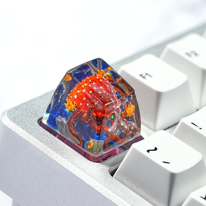 Red Octopus Artisan Keycap R1 SA Profile Custom Ocean Sea Creatures Keycaps 1U ESC Handmade Gaming Kraken Resin Key Cap Cherry MX Switch Compatible Mechanical Keyboard Octopus Lover Gift