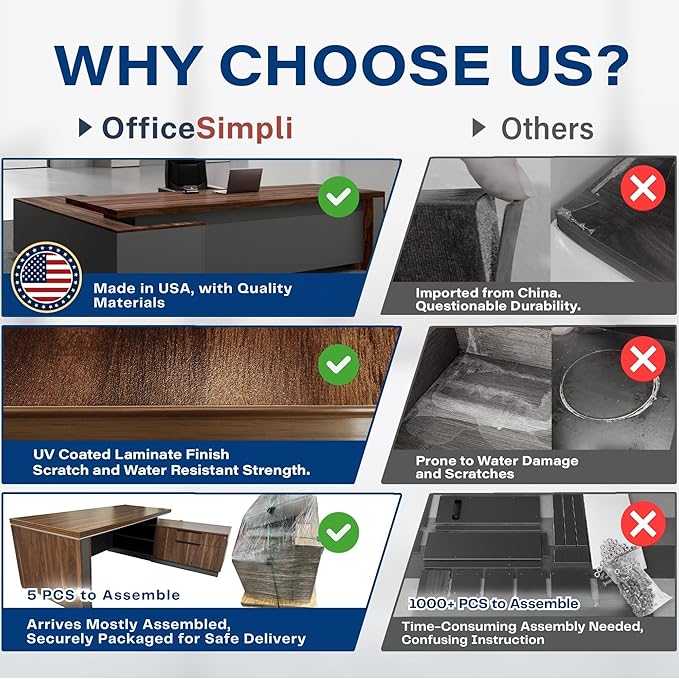 - Crafted in the USA – Expertly made from premium material, this executive desk with drawers offers superior durability, refined style, and American craftsmanship that adds lasting value to your work desk for home office or professional workspace.