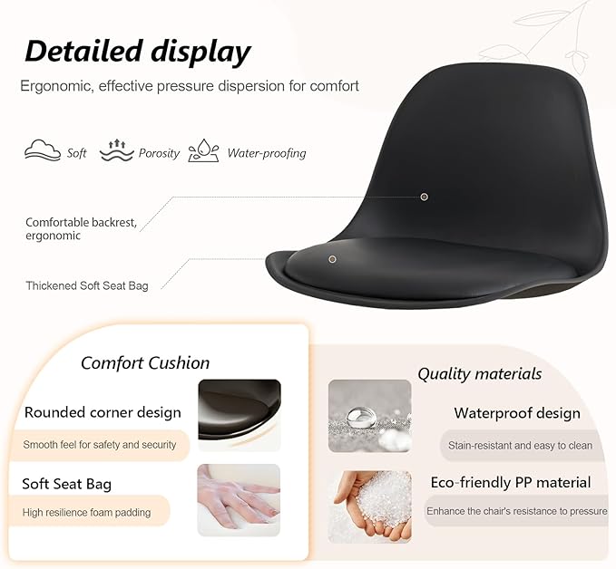 - Ergonomic Backrest for Support: This versatile small desk chair features a lightweight yet durable plastic backrest designed with ergonomic contours to align with your spine’s natural curve. Perfect as an small office chair or vanity chair, it reduces back strain during long hours of sitting, whether you’re working, studying, or getting ready at your dressing table