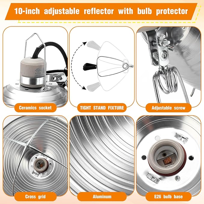 - High Performance: reptile heat clamp light provides the efficient wavelengths of light for maximum absorption by plants. It does not contain harmful substances such as radiation, and neither the air around you nor your lights will be broken. Protect yourself, your plants and the environment