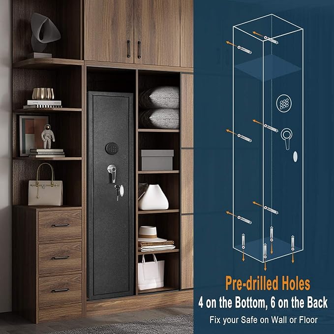 - [Anti-Theft Design]:Greenvelly gun safe is characterized by the 3*22mm diameter locking bolts,tamper-resistant steel doors and heavy-duty tamper-resistant hinges.You need the right code and key to open it, and it's hard to pry it open