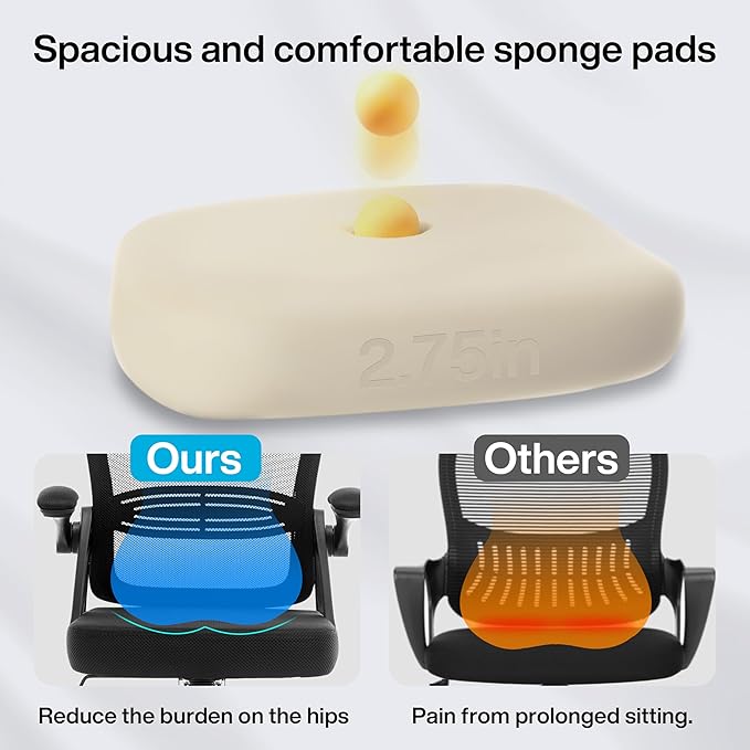 - Breathable Mesh Fabric: The mesh office chair allows the free flow of air, keeping you cool and comfortable at all times; Collapse-resistant, high-density foam soft cushion for comfort and breathability, it won't make you sweat after a long working day
