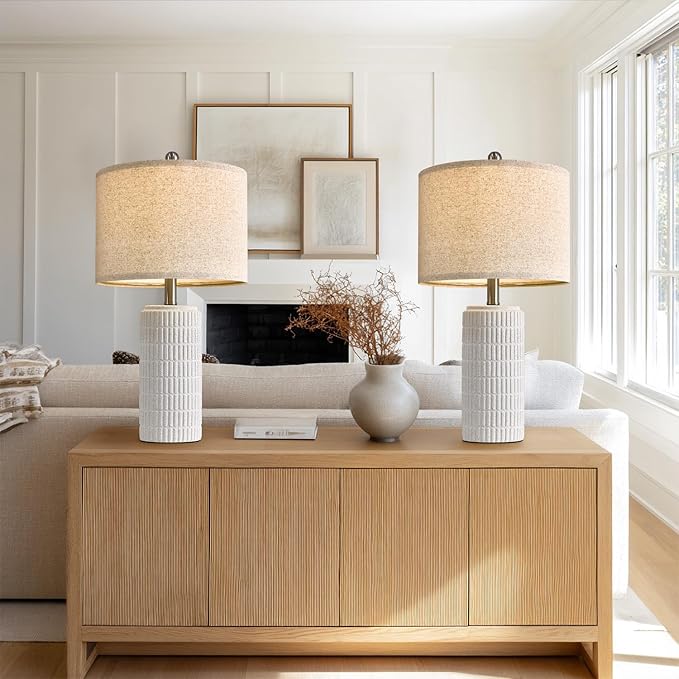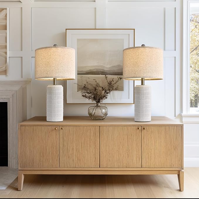 - Ideal Gift and House Decor: Elevate your home decor with Pokat white lamps set of 2, which also serves as a perfect decorative piece. This table lamps set of 2’ modern design add character and warmth to any space, creating a chic and inviting ambiance. Whether placed on a nightstand, bedside in bedroom or on end table, console table, hallway in the living room, this ceramic lamps enhances the overall aesthetic. To showcase your refined taste in decor, this farmhouse lamps makes an ideal present for christmas, new year, housewarming, birthday, anniversary, wedding to her, friends, wife, women, mother, grandmother and men.