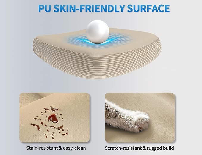 TRALT Ergonomic Office Chair - Desk Chair with Wave High Back Adjustable Lumbar Support Computer Chair - Gaming Chairs Mesh Backrest and PU Leather Seat for Home Reading Chairs to Adults(Beige)