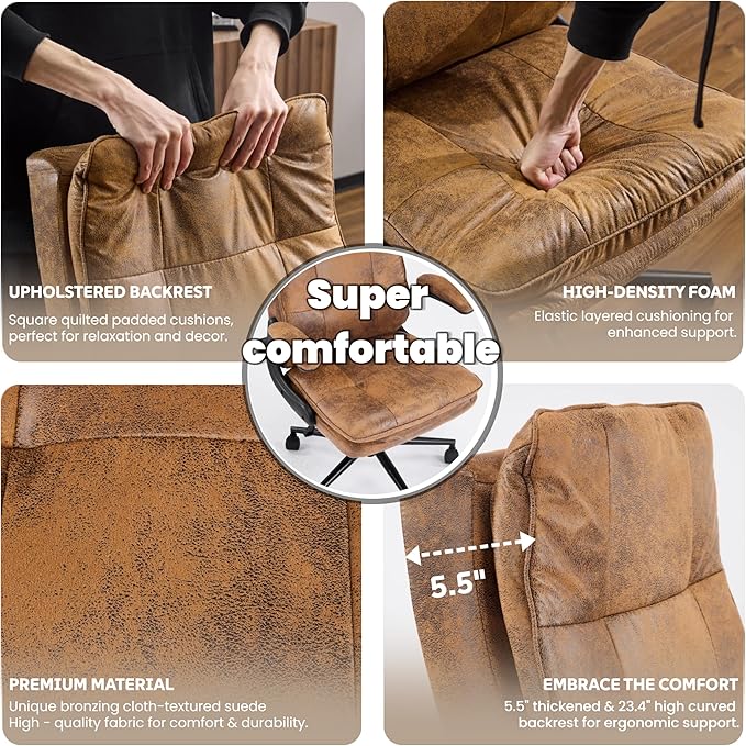 - 1.🔄 PREMIUM MATERIALS & ERGONOMIC COMFORT: Experience exceptional comfort with our executive comfy office chair featuring scratch-resistant PU leather and suede (brown only). The ergonomic 23.4" HIGH BACK with appropriate seat depth reduces gaps between back and backrest, providing full support without extra lumbar pillows. Padded flip-up armrests allow natural arm relaxation, while layered cushioning with high-density foam offers perfect sink-in comfort for enhanced focus during work.