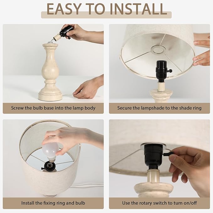- One-Minute Setup - Setting up your new lamp for bedroom is a breeze! Thoughtfully designed for ease and sustainability, our farmhouse lamp require minimal assembly. With a step-by-step installation guide available online and all necessary accessories included in the packaging, you'll have your lamps ready to shine in no time.