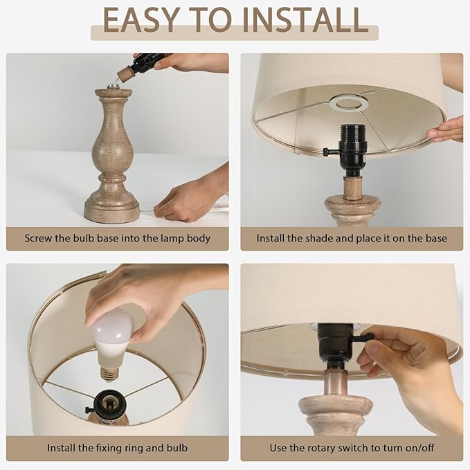 - One-Minute Setup - Setting up your new lamp for bedroom is a breeze! Thoughtfully designed for ease and sustainability, our farmhouse lamp require minimal assembly. With a step-by-step installation guide available online and all necessary accessories included in the packaging, you'll have your lamps ready to shine in no time.