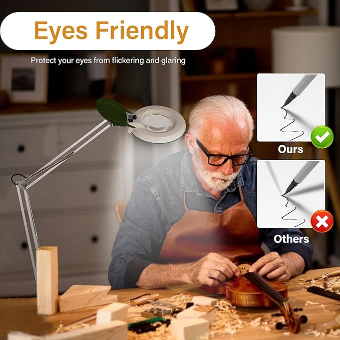 - 【Tool-Free Setup & Lifetime Support】 This magnifying glass with light and stand installs instantly with its clamp or free-standing base. The magnifying lamp with light includes a lifetime warranty, making it a reliable desk light solution for workshops, art studios, and reading nooks.