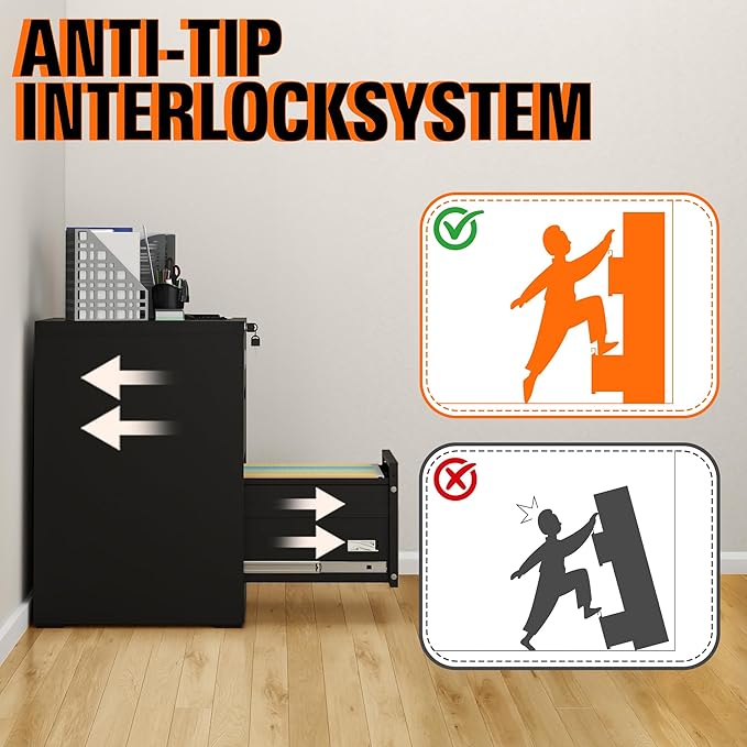 - 【Enhanced Stability & Safety】This cabinet features an anti-tip interlocking system that allows only one openable drawer at a time, preventing multiple drawers from opening at the same time, maintaining balance and preventing accidental tipping. The reinforced construction ensures long-term stability, keeping your workspace safe and tidy.