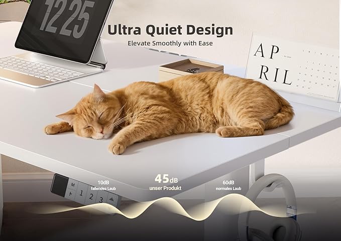 - Height Adjustable & Quiet: The adjustable desk is equipped with a reliable motor that smoothly adjusts the height from 28.3" to 46.5". The motor operates quietly with noise levels under 50 dB, ensuring a peaceful and stable adjustment process, making it ideal for quiet workspaces.