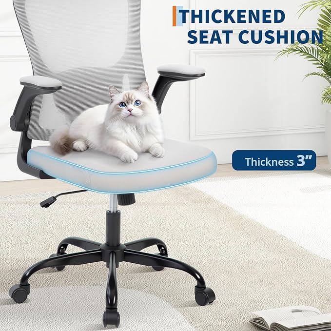 Office Chair – Ergonomic Desk Chair, Adjustable Lumbar Support and Headrest, Flip-Up Armrests, Mesh Computer Desk Chair, Swivel Rolling Executive Gaming Chair for Home & Office (Gray)