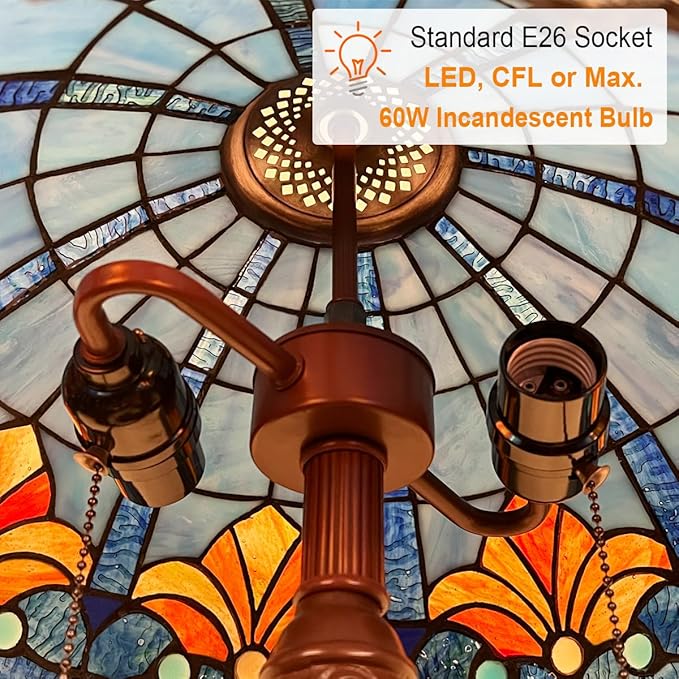 - 【Handcrafted Stained Glass Table Light Bulb】 Featured with a standard E26 socket, this lamp accommodates LED, CFL, or Max. 60W incandescent bulb (bulb not included). For a cozy atmosphere, opt for warm-toned bulbs—their light cascades through the handcrafted shade, casting mesmerizing colorful patterns that captivate all ages.