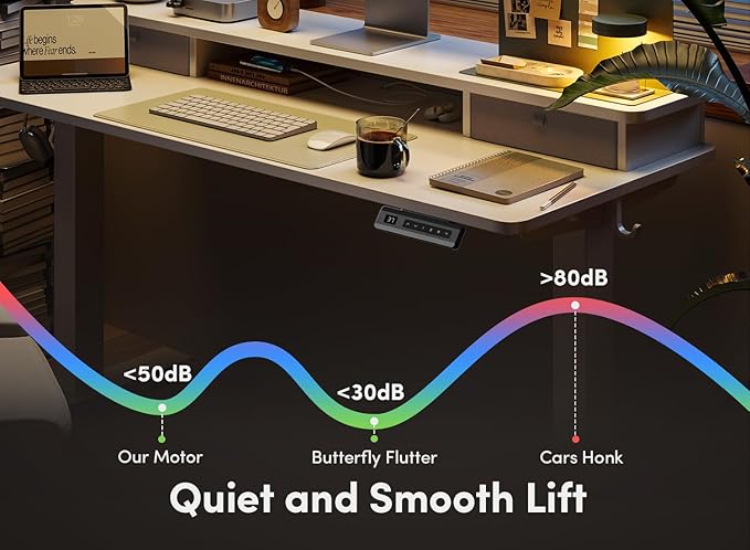 - Memory Height and Anti-Collision Technology: The standing desk is equipped with 4 programmable memory height buttons. If an obstacle is encountered during the lifting process, it will move 2 cm in the opposite direction to protect the motor and tabletop from damage.