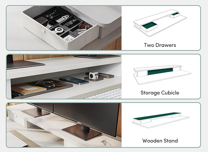 FEZIBO 63 x 28 Inch Deeper Height Adjustable Electric Standing Desk with Double Drawers, Sit Stand Up, Home Office Computer Desk with 4 Height-Adjustable Feets & 2 Hooks, White Frame/White Top