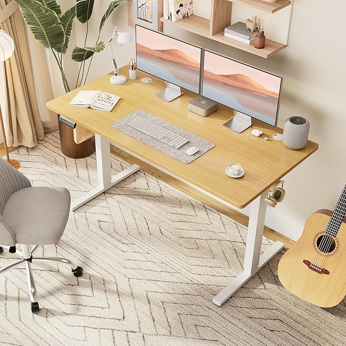 - Smart Electric Height Adjustment - This standing desk effortlessly adjusts from 28.7" to 46.5" with quiet dual motors (<55dB), perfect for switching between sitting and standing positions. Features 3 memory presets and an LED display for instant recall of your preferred heights. The anti-collision system and safety lock ensure smooth, protected operation.