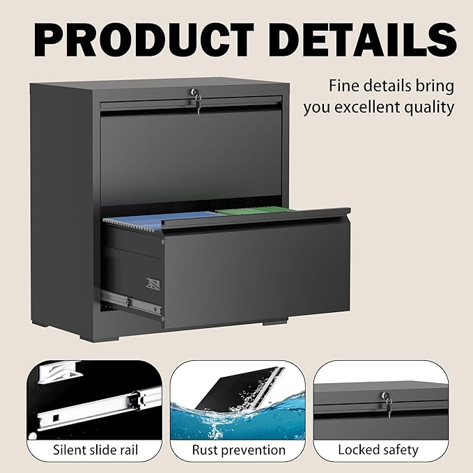 - 【Sturdy Cold-Rolled Steel Construction】Our lateral file cabinet crafted from cold-rolled steel, whole is designed to stay sturdy and does not deform. With a powder coating process that bonds and bakes the protective coating to the bare metal, the file cabinet 2 drawer lateral forms an effective barrier against corrosion. And its reinforced construction supports up to 330 lbs, which can long-lasting for.