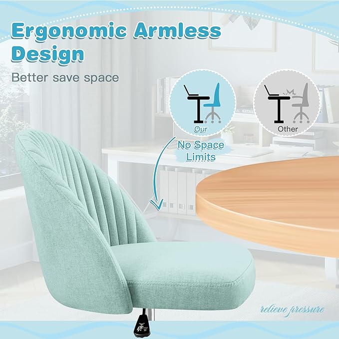 - Simple Fashion: Unlike traditional office chairs, this armless office desk chair features a modern striped design and skin-friendly fabric, giving the space more energy and character. This wide office chair is perfect for a home office, living room, bedroom, vanity room, study, etc.