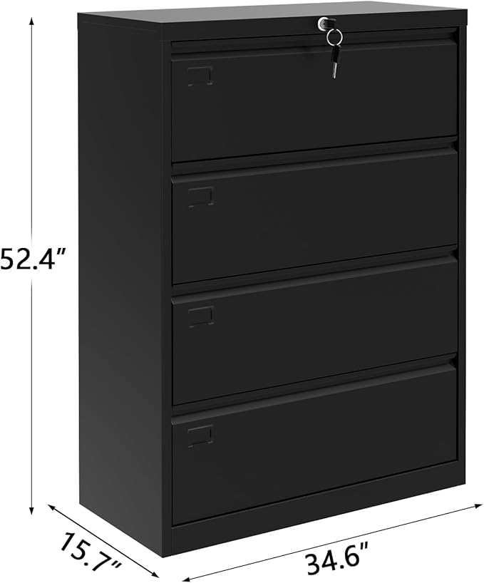 - --Ample Storage: Measuring 34.6''x15.7''x52.3'', this 4 drawer file cabinet fits legal, letter, and A4 documents with adjustable hanging bars. The wide lateral file cabinet maximizes storage, making it perfect for busy home offices