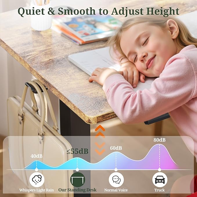 - 【Electric Height Adjustable Standing Desk】 Easily switch from sitting to standing with a smooth motorized lift system. The sit stand desk adjusts between 28.35"–46.46", providing customizable ergonomic comfort for home offices, workstations, and gaming setups. Quiet motor (<55dB) ensures seamless operation without disturbing your focus.