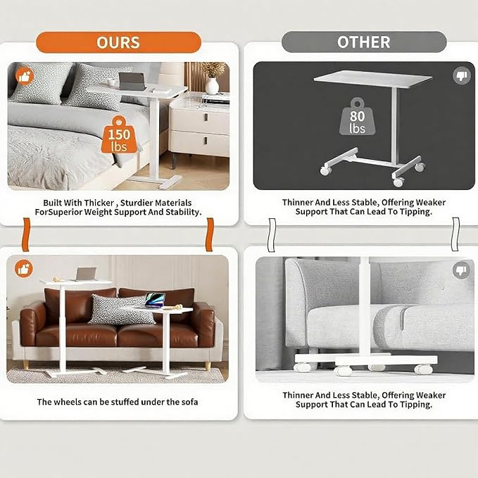 - Easy to Clean: The desktop of this standing desk with wheels is waterproof and scratch-resistant, making it quick and easy to clean. It is perfect for bedridden patients or home use.
