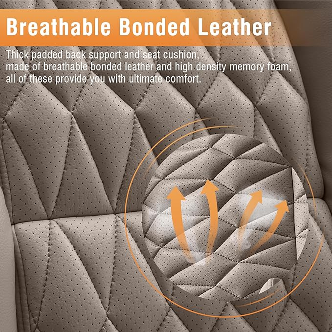 Large High Back Office Chair - Adjustable Lumbar Support Flip Up Arms Heavy Duty Quiet Wheels Metal Base Breathable Bonded Leather Ergonomic Executive Computer Desk Chair with Storage Bags, Khaki