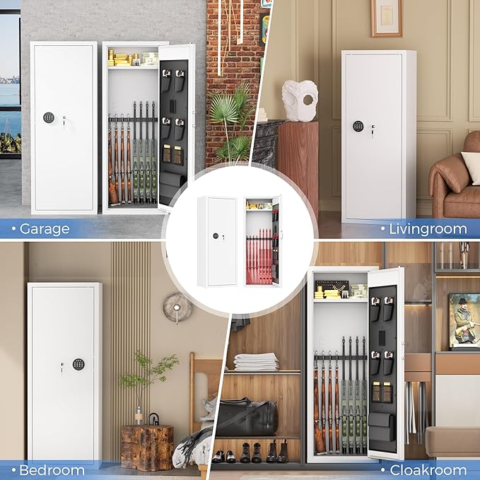 Greenvelly 12-14 Gun Safe for Rifles and Pistols,Gun Cabinet with Password Lock for Home,Office,Bedroom(White,Assembly Required)
