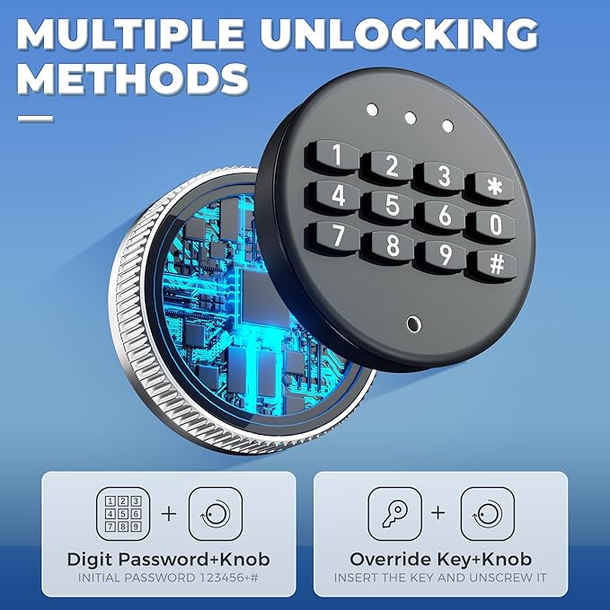 - [Digital Password Lock]:Greenvelly locking large gun cabinet adopt digital unlock module.You could choose 3-8 digits as the unlock password.Besides, the gun safe equipped dual alarm system. There are indicator lights on the digital lock to indicate the opening&closing state or whether the battery is in a low state..The gun safe suit for garage,home,office,etc..