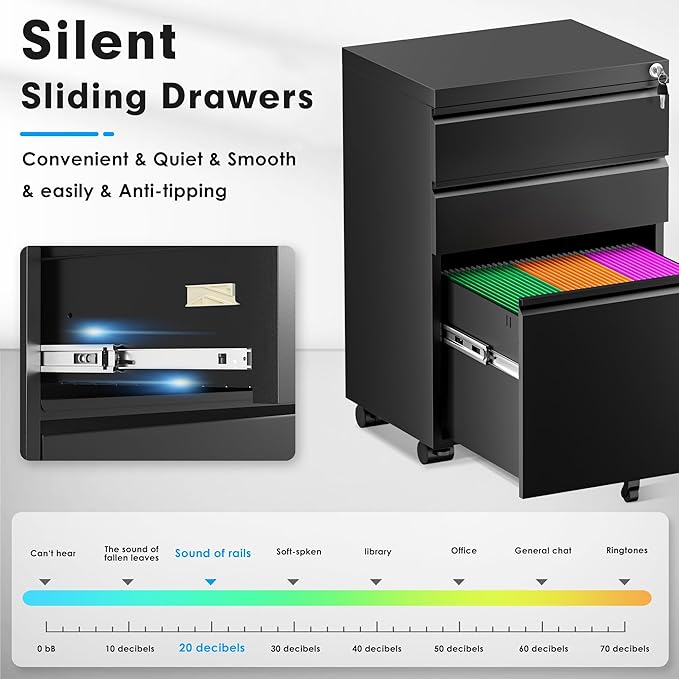- 【File Cabinet with Lock】Greenvelly under desk file cabinet adopts an innovative locking mechanism. With just one lock, all drawers can be locked or opened simultaneously, saving the trouble and time of opening each drawer one by one. Safely protect the privacy of your files and important information.