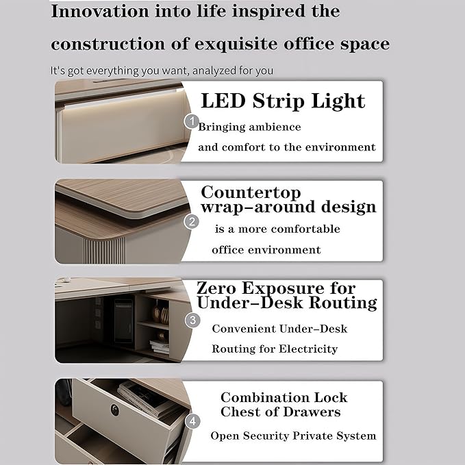 - Durable and Stylish Design Built to Last: This modern executive desk combines modern aesthetics with exceptional durability, along with sleek curves and sturdy construction, adds a touch of sophistication to any home or business office.