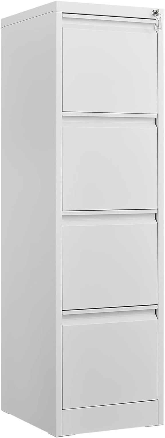 4 Drawer File Cabinet with Lock, Vertical File Cabinets for Home Office, Metal Filing Cabinets, Heavy Duty Steel Lockable Filing Storage Cabinet for Letter/Legal/A4/F4 Size Files, White
