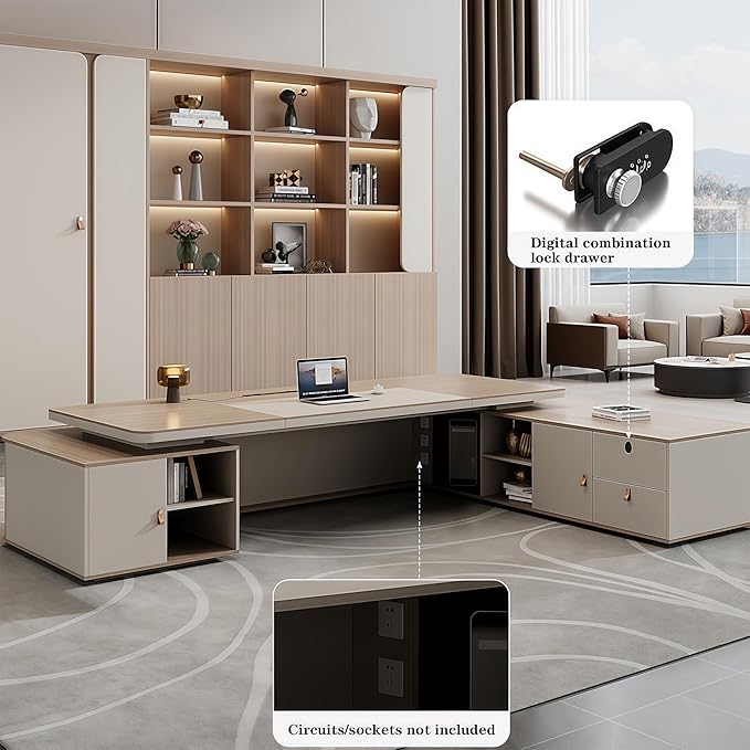 - Durable and Stylish Design Built to Last: This modern executive desk combines modern aesthetics with exceptional durability, along with sleek curves and sturdy construction, adds a touch of sophistication to any home or business office.