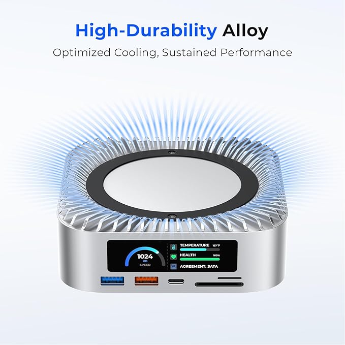 - 【Built-in 8TB M.2 NVMe/SATA SSD Enclosure】This Mac mini M4 docking station includes a built-in hard drive enclosure supporting both M.2 NVMe and SATA SSDs up to 8TB capacity. It's compatible with most SSD sizes (2230/2242/2260/2280). Note: For stable operation and to avoid disconnections, please connect the dedicated USB-C charging port on the dock when using high-power SSDs.