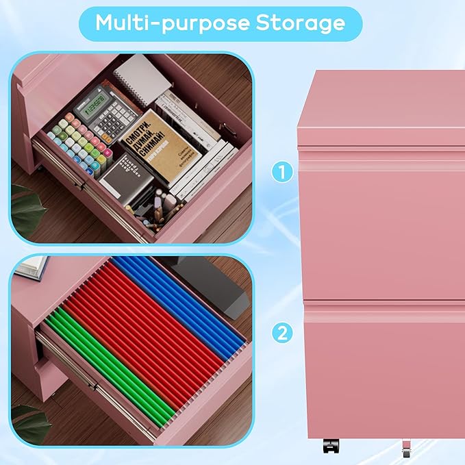 - 【Security Assurance】: This 2 drawer pink file cabinet comes with a lock to ensure the safety and security of your important documents and confidential information.