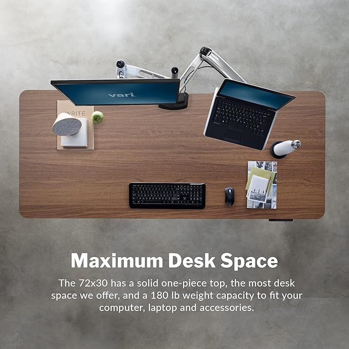 VARI Classic Electric Standing Desk - VariDesk Height Adjustable Sit/Stand Desk - Dual Motor with Memory Presets, Stable T-Style Legs - Gaming or Home Office Workstation - 72”x30”, Walnut/Black