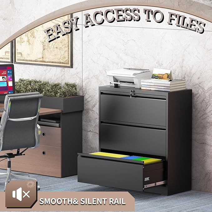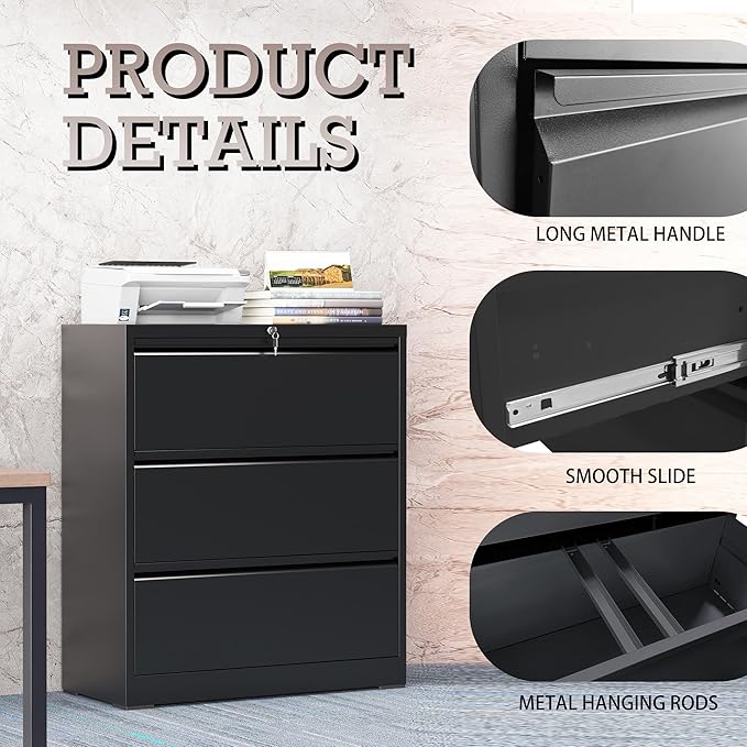- 【Premium Steel Material】The 3 drawer lateral file cabinet constructed from sturdy cold-rolled steel and with a powder coating process. This filing cabinet offers perfect strength and durability. It reliably protects your important files from damage and is built to withstand daily use for several years to come.